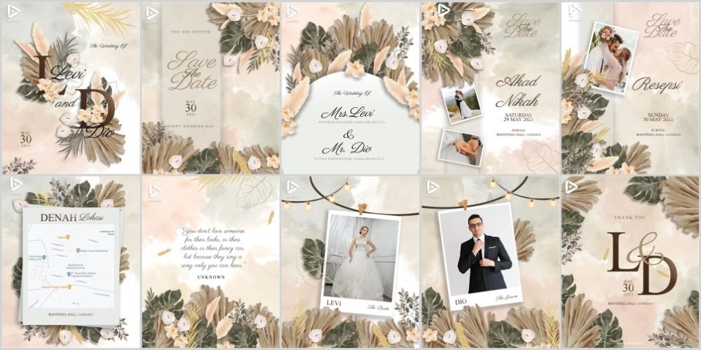 Berikut adalah berbagai macam contoh template video menarik bertemakan pernikahan,semua konten dapat disesuaikan untuk kebutuhan Anda.
